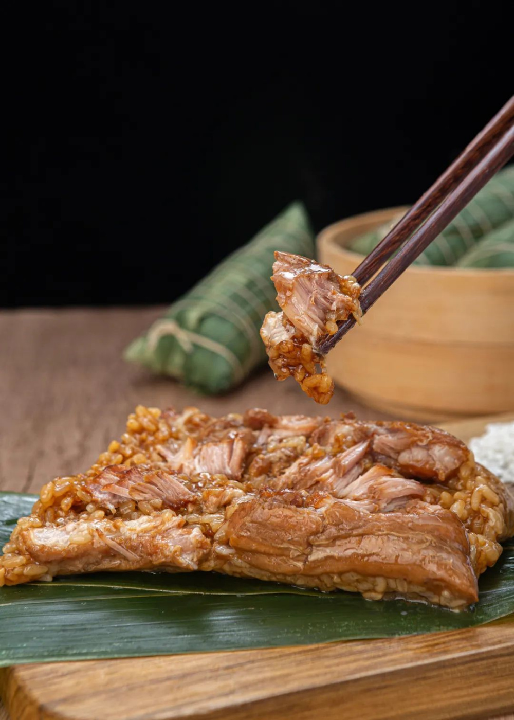 膳博士黑豬鮮肉粽手工包裹的匠心,個大餡足,實在有料!加上嚴苛的鎖鮮工藝,讓每一只粽子的口感都如現包現煮一般,讓人回味無窮。